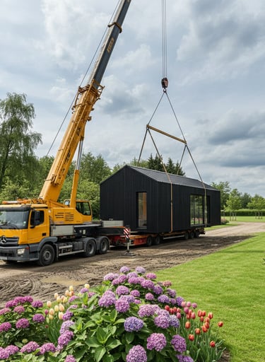Is de woning klaar? Dan regelen wij het transport met ervaren partners. We plaatsen de woning met een kraan op uw terrein en kunnen zorgen dat hij snel gebruiksklaar is. Vaak staat het al binnen één dag!